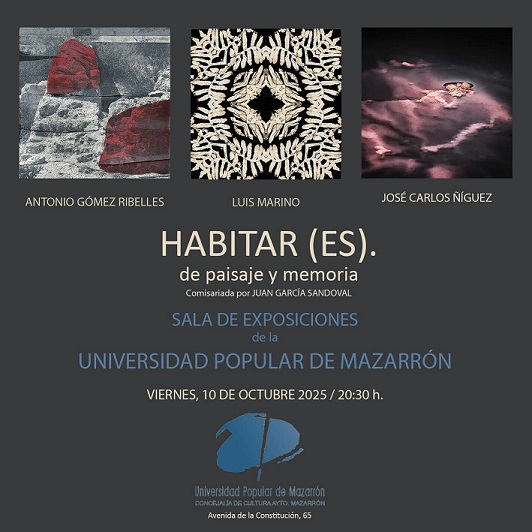 La muestra reúne las obras de Luis Marino, José Carlos Ñíguez y Antonio Gómez Ribelles, tres artistas cuyas propuestas confluyen en una reflexión común sobre el paisaje, la memoria y la experiencia de habitar.