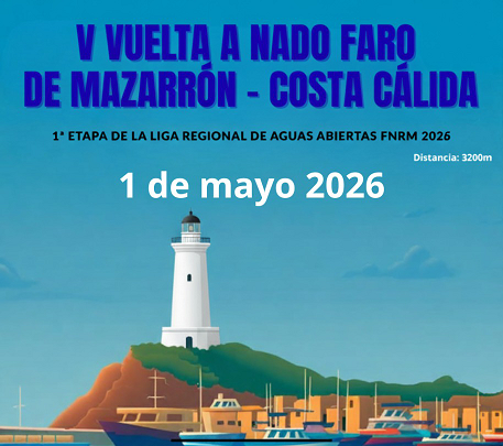El Club Natación Máster Murcia (CNMM) y el Ayuntamiento de Mazarrón organizan la V Vuelta al Faro de Mazarrón, una espectacular travesía a nado que se celebrará el 1 de mayo de 2026.